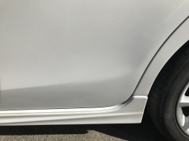 自損事故とのことでした。左リア・スライドドア周辺にヘコミが見られます。
