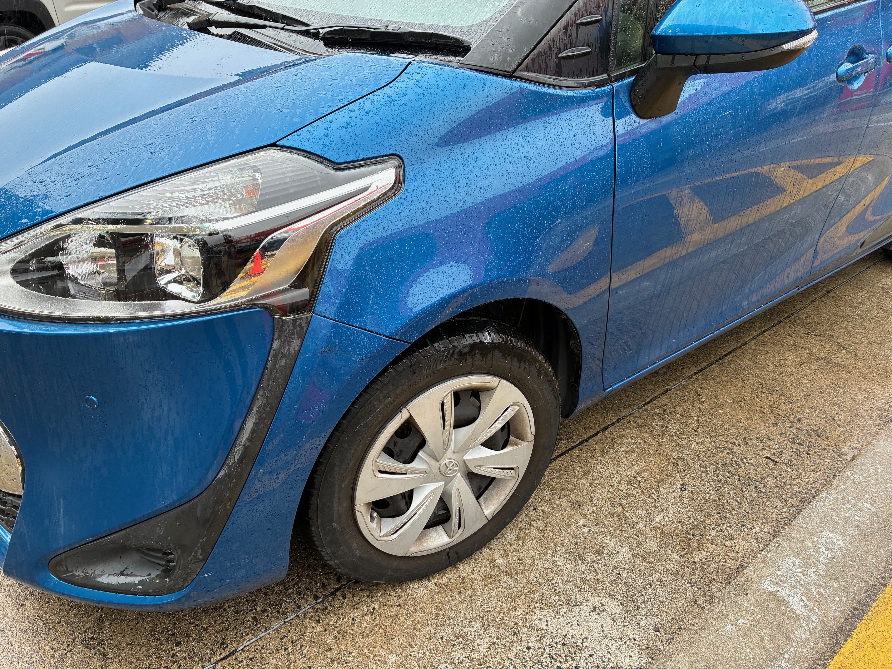 フェンダーに大きなへこみが入っています。お客様とご相談した結果、今回はフェンダー交換となりました。