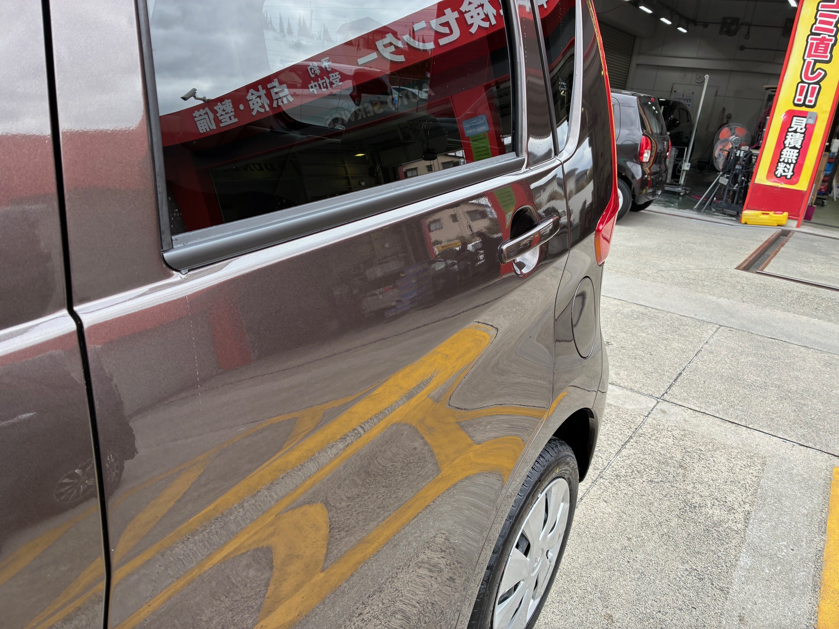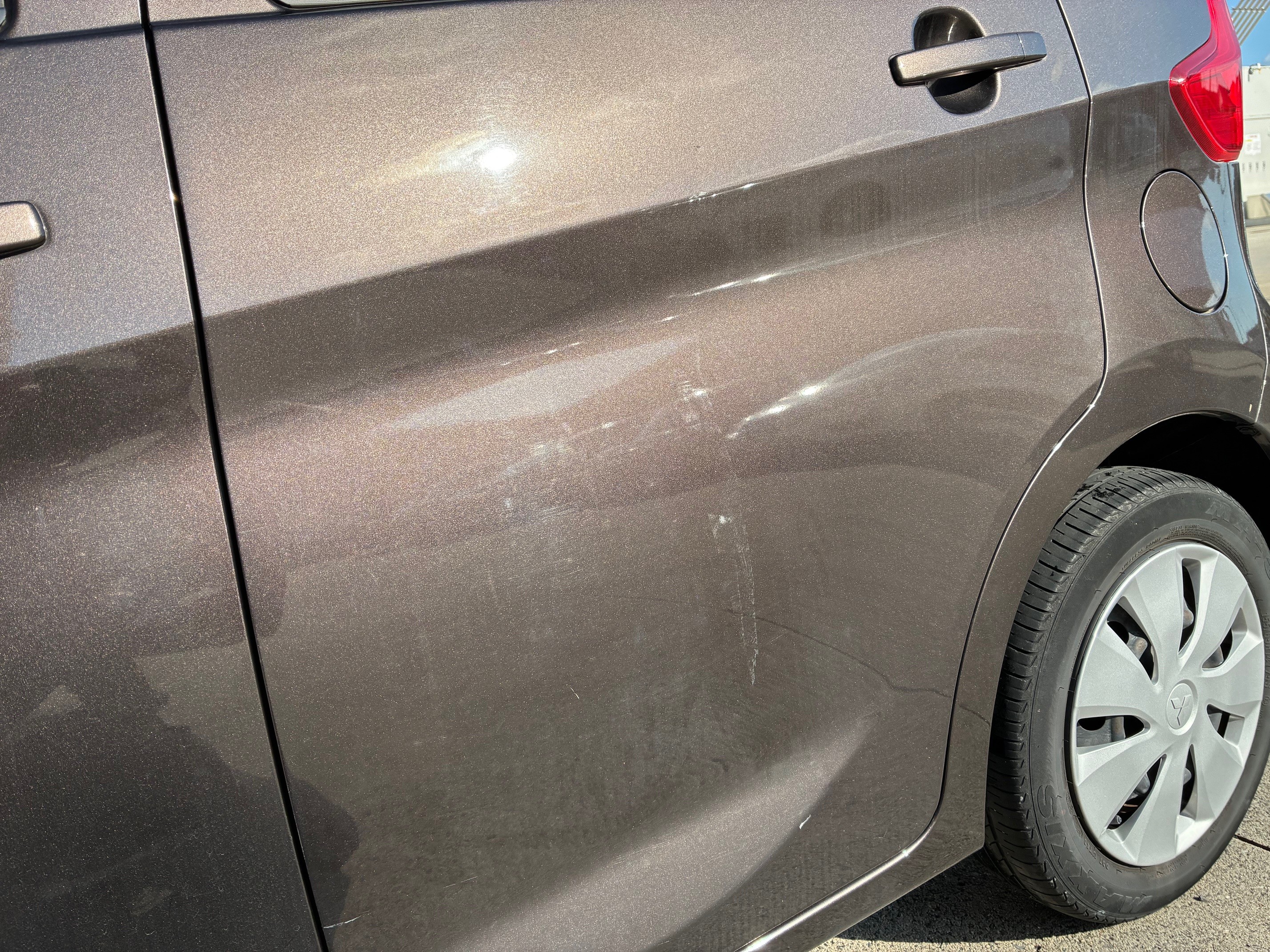 今回は左リアドアの線キズ・ヘコミ修理です。