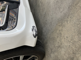 ご自身での運転の際にぶつけてしまわれたそうです。Fバンパーにエグレが出来ております。