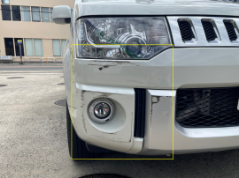 駐車場にてぶつけられたとのことでした。バンパーにエグレが出来ております。